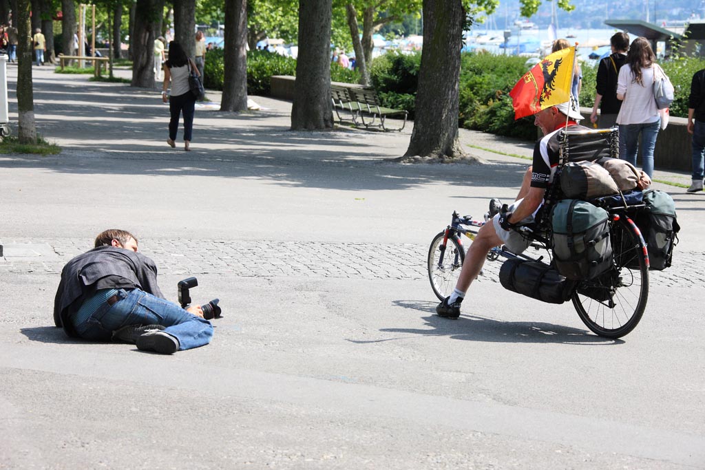 Mit zwei Kolleginnen machten wir uns auf, Zürich im Sommer zu beobachten. "Mensch - Umwelt - Mobilität" war unser Thema. Die sommerlich quirlige Athmosphäre verbreitete ihren eigenen Schwung und es fiel uns nicht schwer, die vielen Momente festzuhalten, wie der Mensch eilt, geniesst, innehält und sich der sommerlichen Schwere, die alles etwas langsamer macht, hingibt.