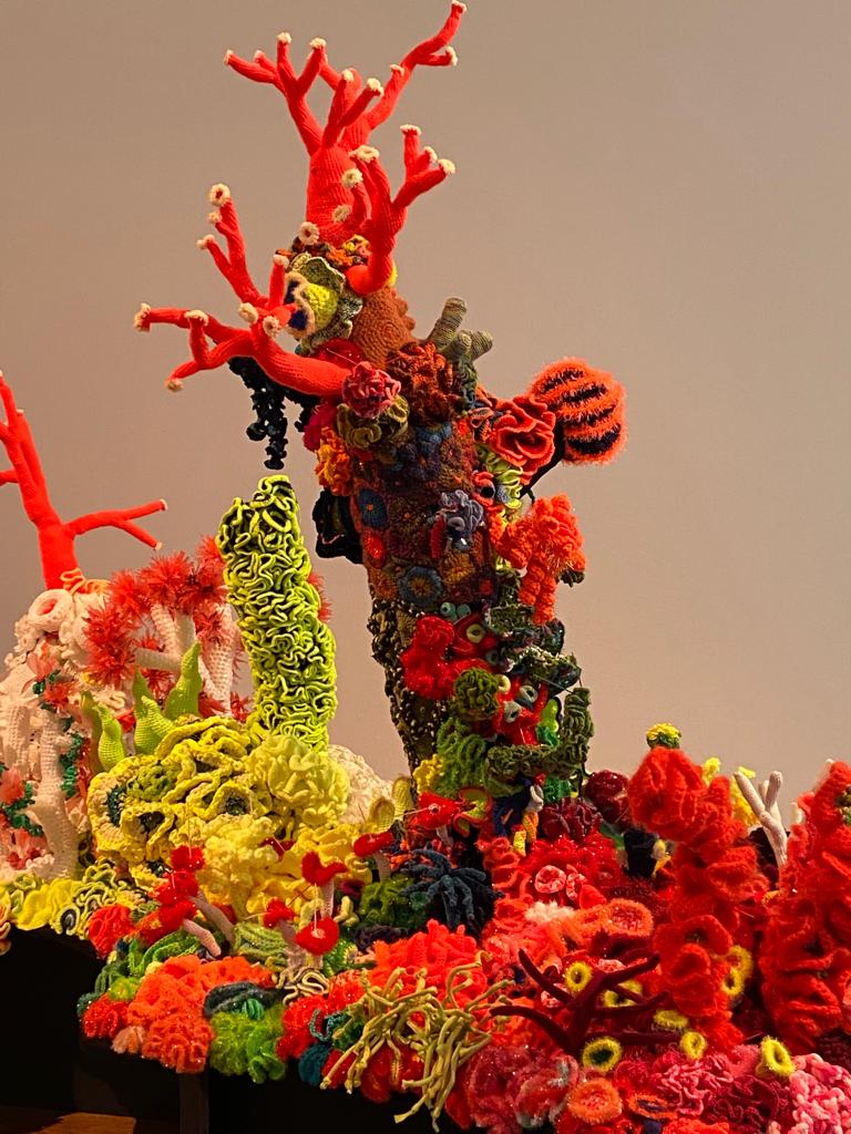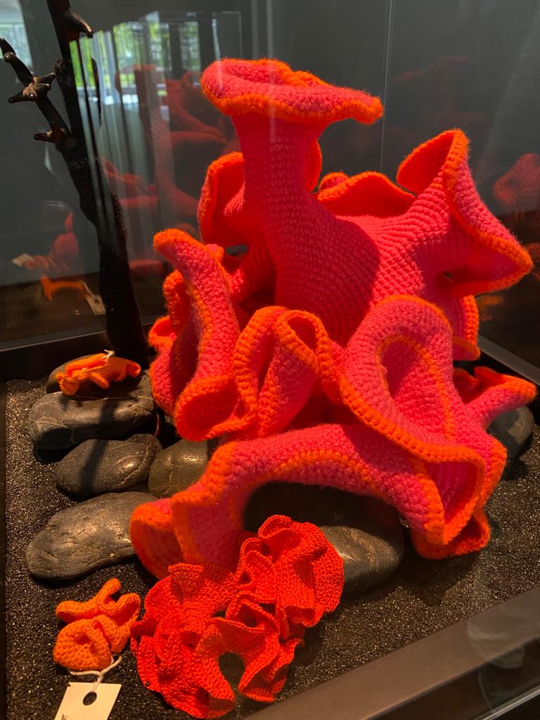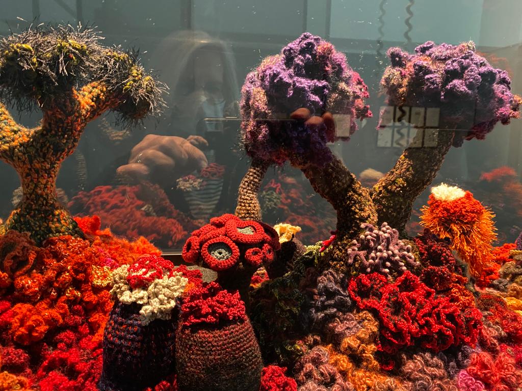 Das Individuelle wird gewertschätzt, das anonyme Kollektiv nicht. Während vier Monaten füllt jetzt das Häkel-Riff in Lausanne eine symbolische Leere. Während draussen die Korallenriffe ausbleichen, erinnern die gehäkelten Korallen daran, dass die Menschheit gerade ein Naturwunder zerstört, das wahrscheinlich für immer zu verschwinden droht.