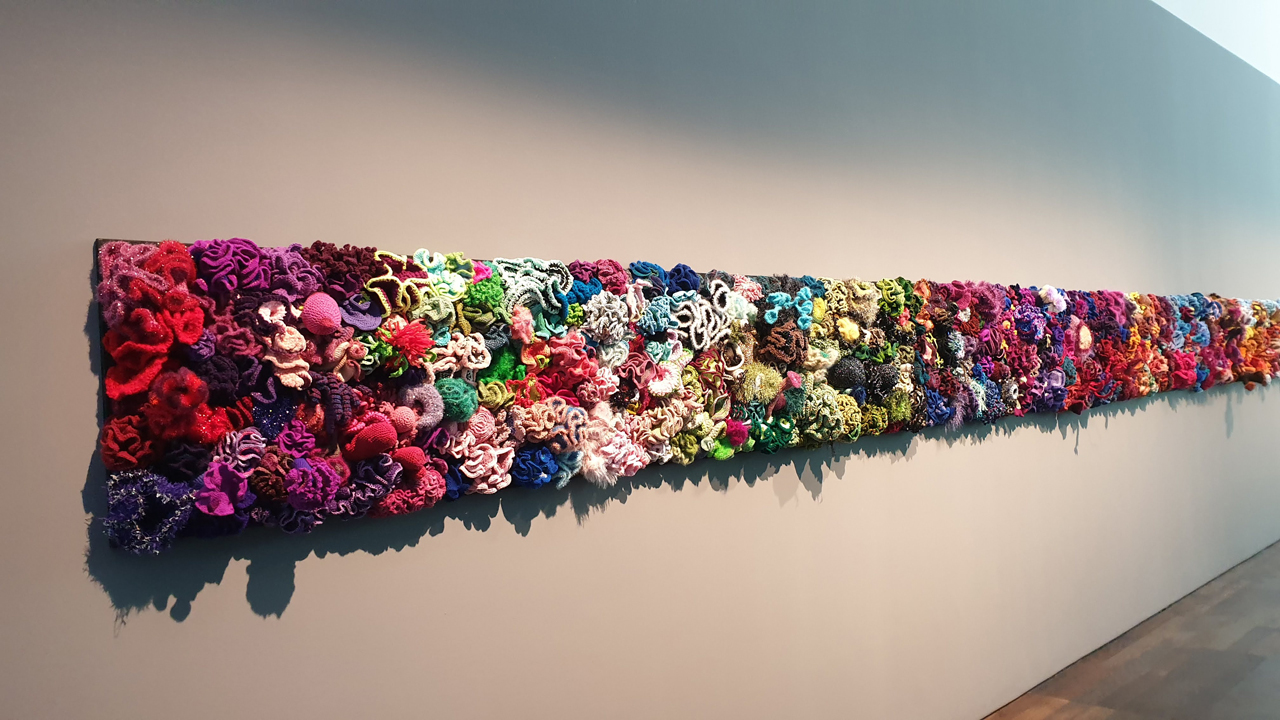 Der Mensch und das Meer: Eine Ausstellung in Baden-Baden zeigt ein Häkel-Projekt zweier Schwestern, das weltweite Aufmerksamkeit erregte und an dem schon Tausende von Menschen mitgewirkt haben. Die Korallenriffe sind aus farbiger Wolle und glitzernden Fäden gehäkelt. Polypen, Noppen und Stängel wuchern über die Tische und viele gewellte, krause Korallenformen bestimmen das Ausstellungsbild. Sie sehen aus wie farbiger Salat oder Federkohlblätter.Handwerkskunst trifft Mathematik.